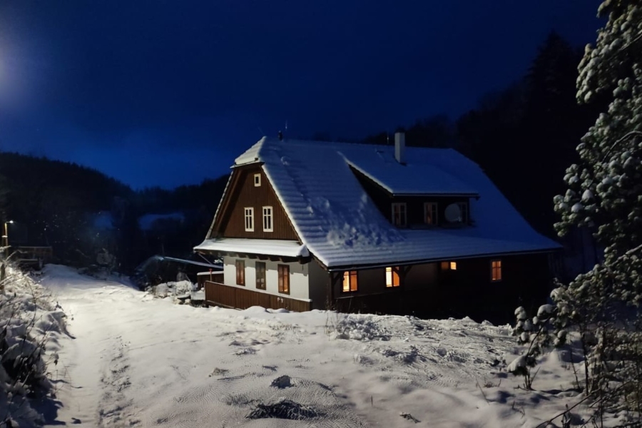 Chalupa je nově zrekonstruovaná a umožňuje ubytování až pro 12 osob. Nejčastěji k nám jezdí rodiny s dětmi v počtu 8-12 osob, kdy maximálně využijí komfort chalupy. Kuchyň je vybavena elektrickou troubou, sklokeramickou deskou, myčkou, lednicí, mikrovlnkou a topinkovačem. K dispozici je i společenská místnost s velkou LED TV se satelitem a stolním fotbalem. Odpočívat můžete ve 4 čtyřlůžkových ložnicích. Sociální zařízení s WC a sprchovým koutem s tropickým deštěm je společné vždy pro 2 ložnice. Krb a kachlová krbová kamna navodí skvělou atmosféru.